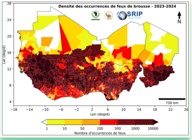 Informations sur les risques de feux de brousse (facteurs favorisants), les surfaces brulées, densité des feux, techniques et moyens de lutte, etc